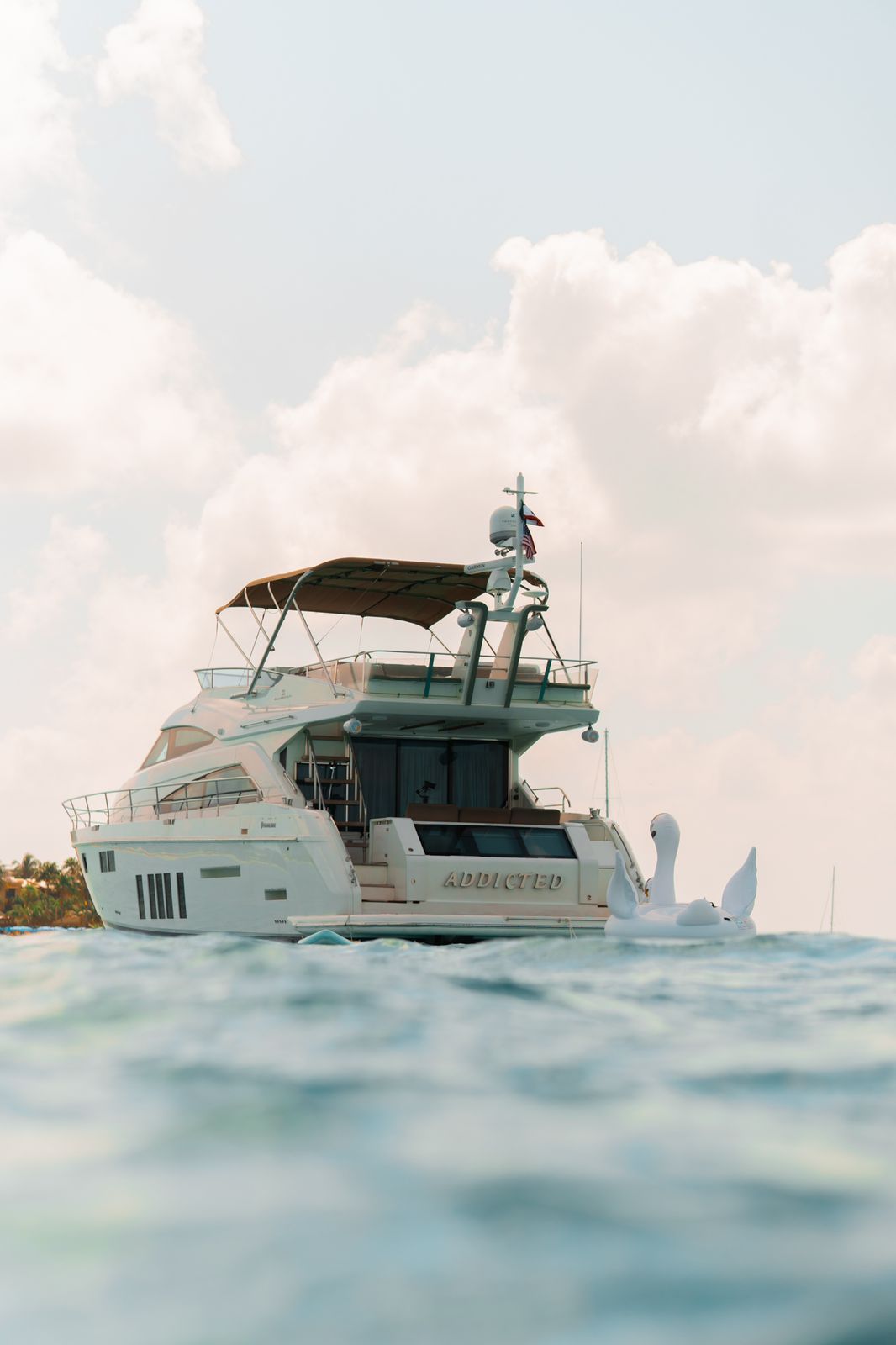 Addicted – 70ft Fairline Sleek European design and versatile elegance define Addicted , a 70-foot Fairline yacht ideal for both intimate getaways and spirited outings on the water. Highlights Comfort & Style – Accommodates up to 15 guests for day charters – Three luxurious cabins and three full bathrooms – Air-conditioned interior with full kitchen, dining area, and salon – Expansive bow and stern decks plus shaded cockpit lounge Onboard Service & Amenities – Fully equipped galley for onboard meals – Fresh towels and professional-grade service throughout your journey – Complimentary refreshments: 24 beers, 24 sodas, 24 bottled waters, and ice Water Toys & Adventure – Inflatable floats and water mat for laid-back fun – Snorkeling gear and recreational fishing equipment included – Life jackets for all guests Whether you're chasing sunsets, reeling in the catch of the day, or soaking up sun in good company, Addicted delivers an unforgettable yachting experience with comfort, style, and adventure at its core. ‍