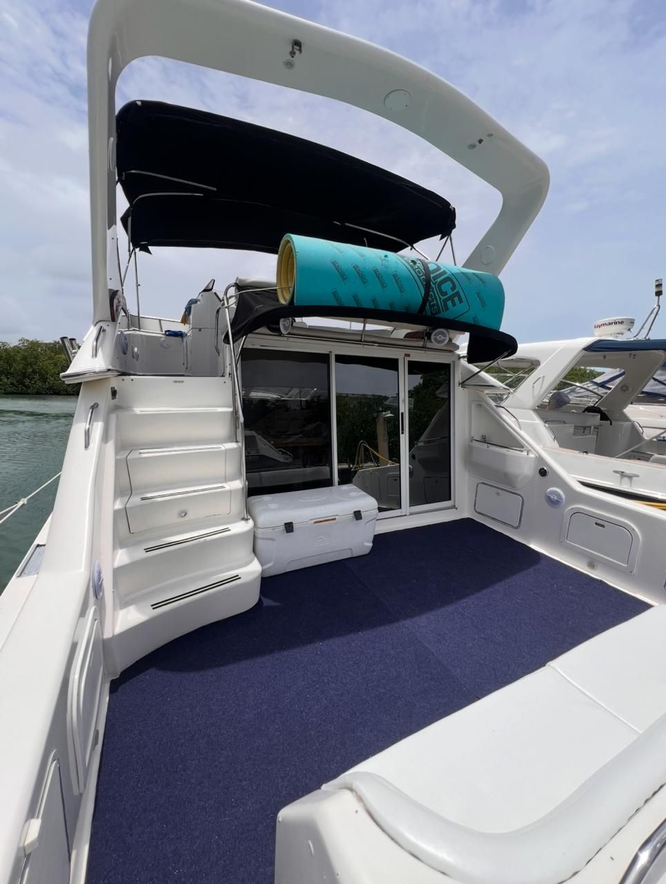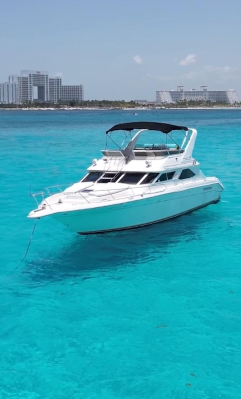 Amore Mio – 45 ft Sea Ray Flybridge Yacht Step aboard Amore Mio , a refined flybridge yacht that blends elegant design, smooth performance, and relaxed coastal cruising. Highlights Comfort & Layout – Well-appointed interior with lounge seating and natural light – Flybridge with elevated views, seating, and open-air relaxation Fully Equipped & Service – Functional galley with refrigerator and basic amenities – Professional crew on board for a seamless experience – Refreshments included, kept ice-cold throughout the trip Modern Amenities – Air-conditioned interior spaces – Bluetooth sound system for your favorite music on board Water & Fun – Floating mat and inflatables – Snorkel gear and life jackets for all guests Perfect for laid-back cruising or anchoring in crystal-clear waters, Amore Mio offers a comfortable and stylish way to enjoy the sea with friends and family.