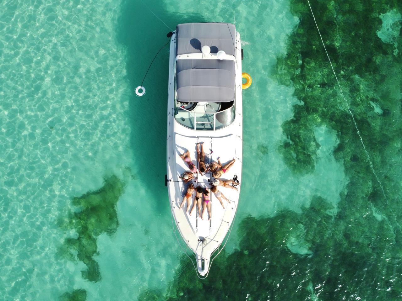 Captain Jack – 44 ft Sea Ray Sundancer Step aboard Captain Jack , a stylish and versatile Sea Ray Sundancer designed for smooth cruising, comfort, and relaxed days on the water. Highlights Comfort & Layout – Spacious cockpit with comfortable seating for socializing – Sun pads perfect for lounging while cruising or at anchor Fully Equipped & Service – Well-appointed cabin with lounge and resting areas – Professional crew on board ensuring a seamless experience – Refreshments included and kept ice-cold throughout the trip Modern Amenities – Air-conditioned interior spaces – Bluetooth sound system for your favorite music on board Water & Fun – Floating mat and inflatables – Snorkel gear and life jackets for all guests Ideal for groups looking for comfort and style, Captain Jack offers a fun and refined way to enjoy the sea.