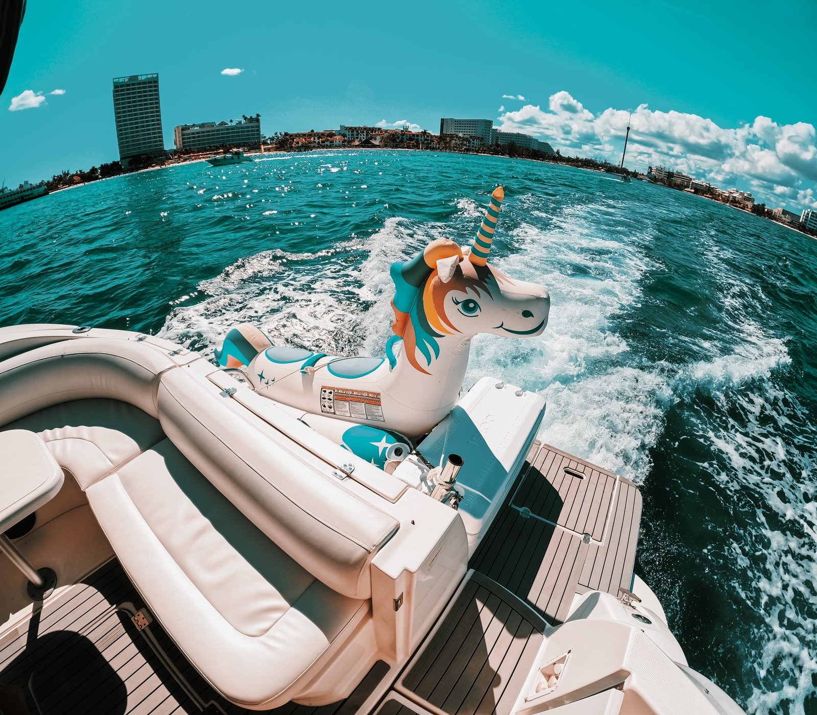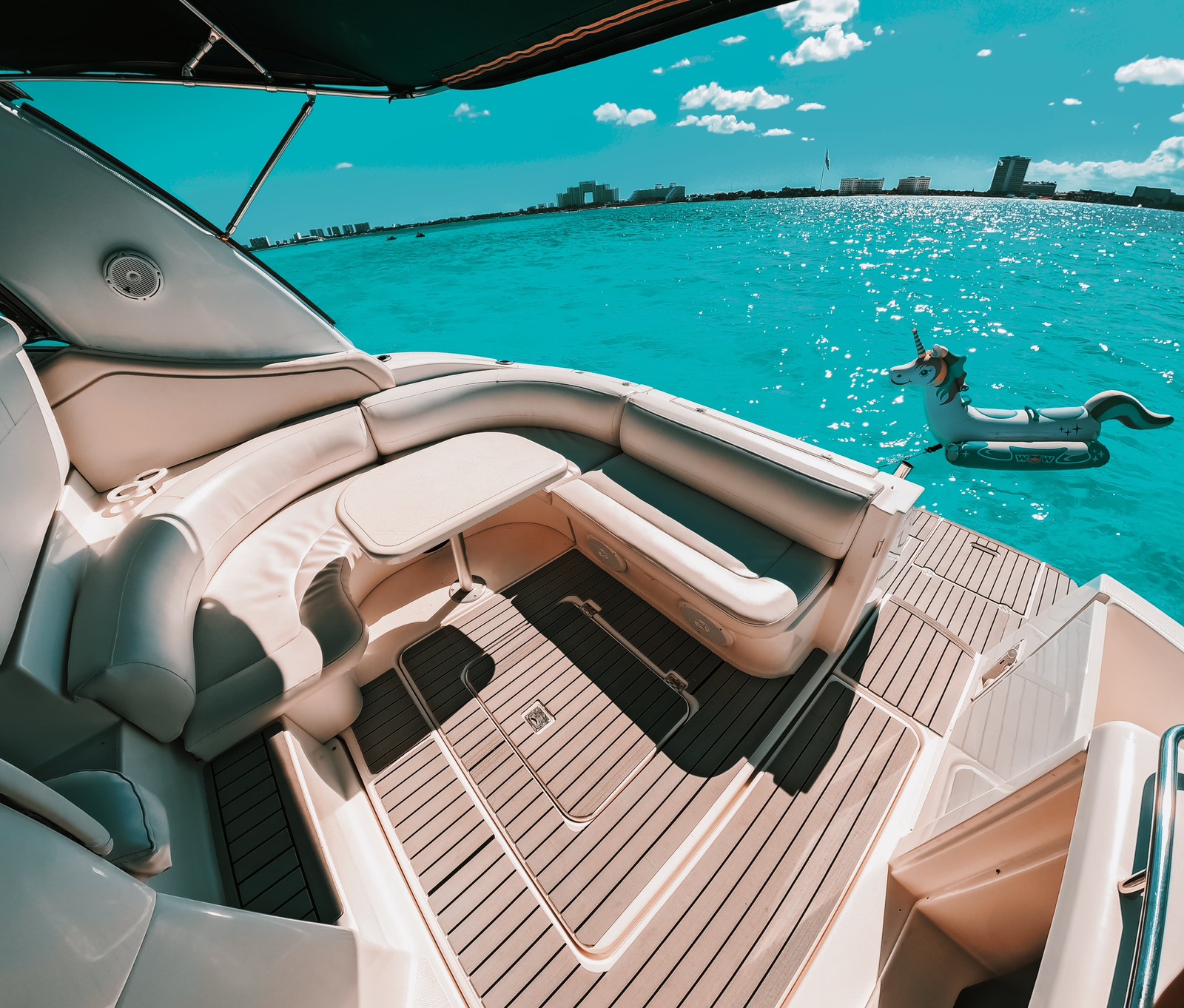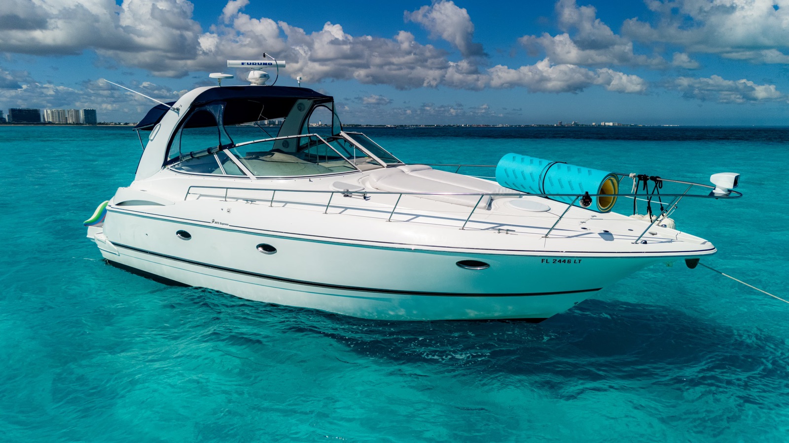 Cruisers Yachts 40’ Express A sleek and versatile sport yacht, the Cruisers Yachts 40’ Express offers the perfect balance of space, style, and performance. With an open cockpit layout, shaded lounge areas, and a comfortable bow for sunbathing, it’s ideal for cruising Cancún’s crystal-clear waters with friends and family. Includes: Certified captain and 1 crew member Large cockpit with shaded seating and dining area Bow sunbed and easy swim platform access Snorkeling gear and floating sea carpet 24 beers, 24 sodas, and 24 bottled waters Fresh towels for all guests 3 bags of ice for drinks and refreshments Bluetooth sound system The Cruisers 40’ is perfect for half-day escapes, romantic getaways, or group outings — offering comfort and agility in a modern package.