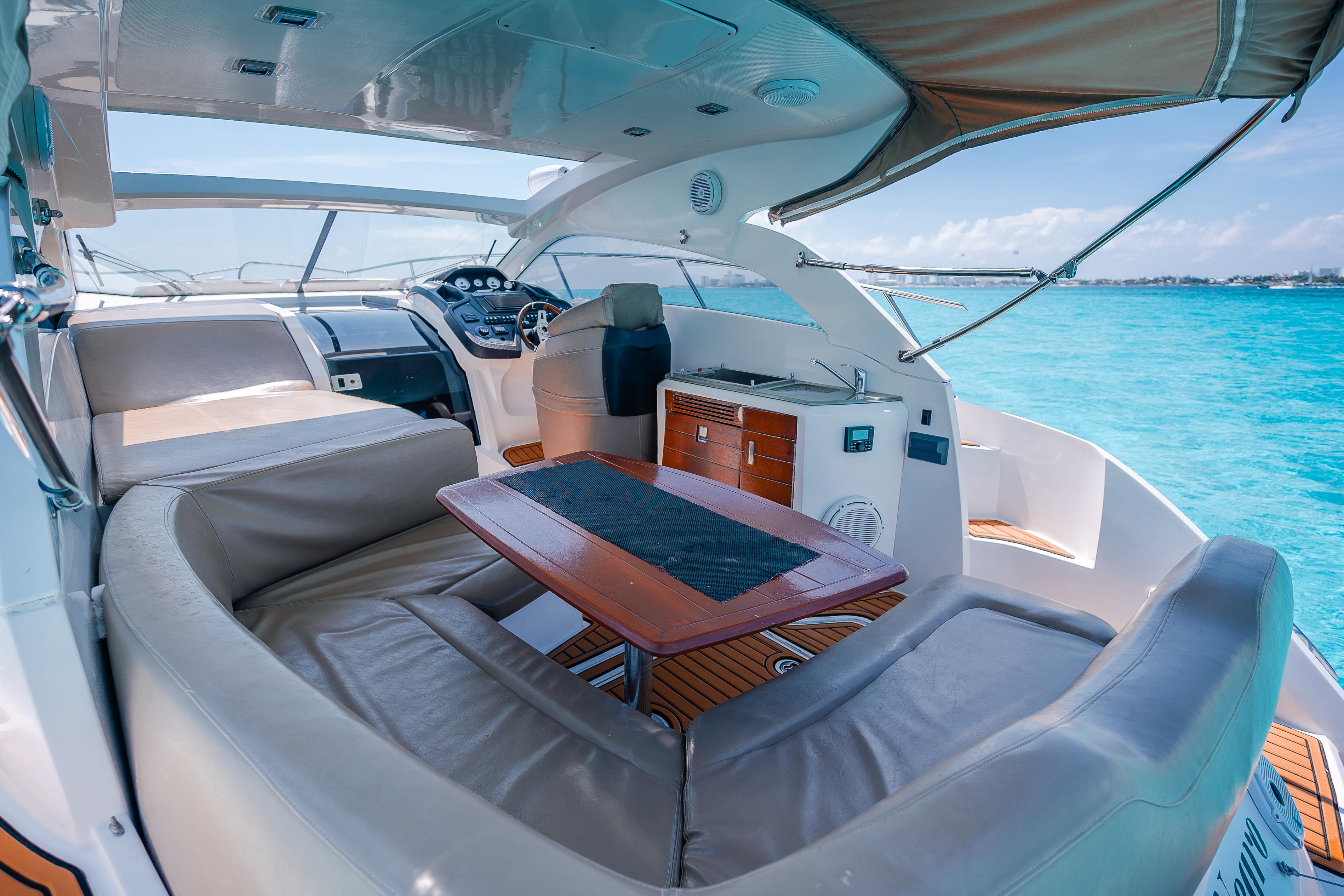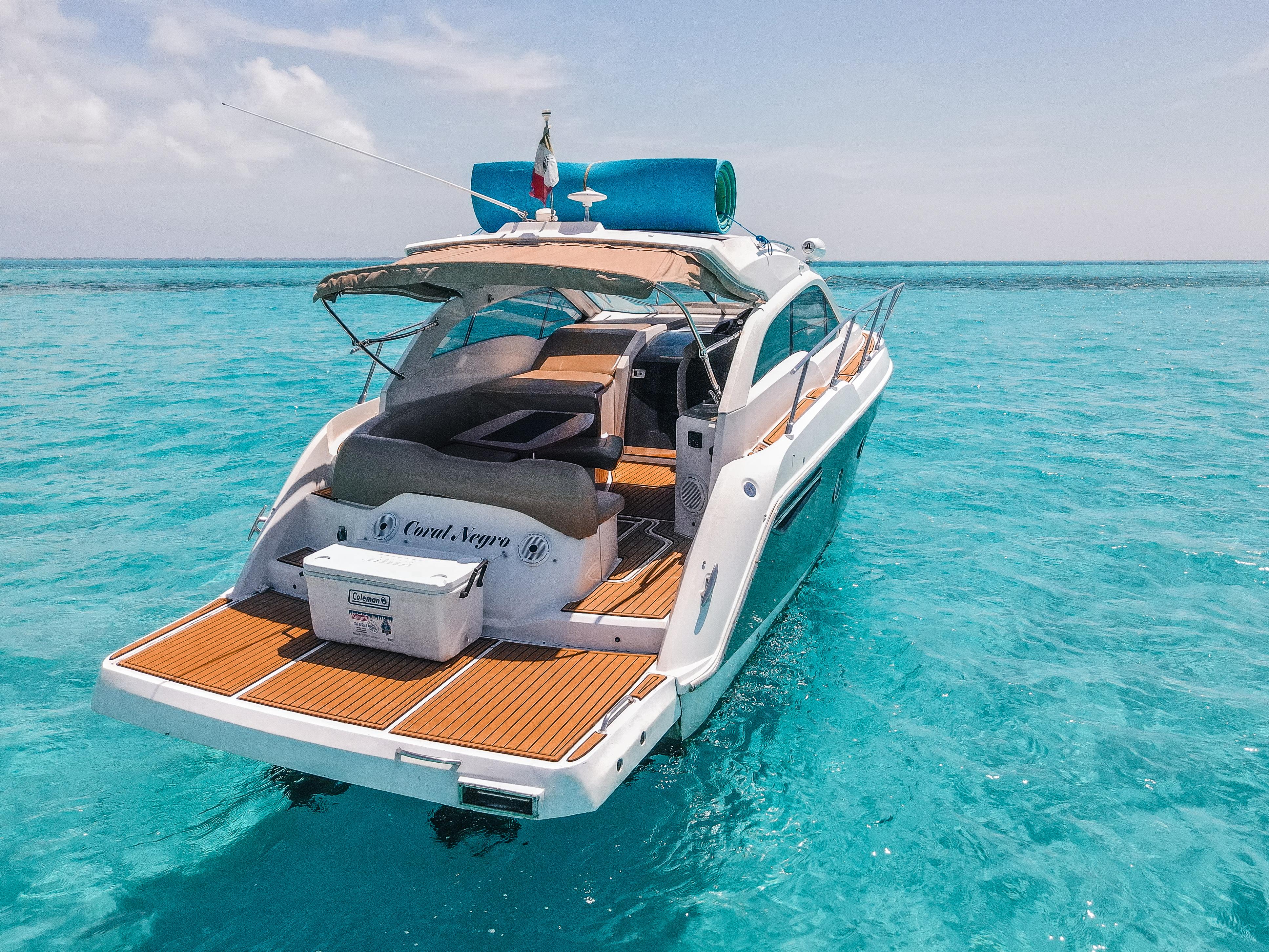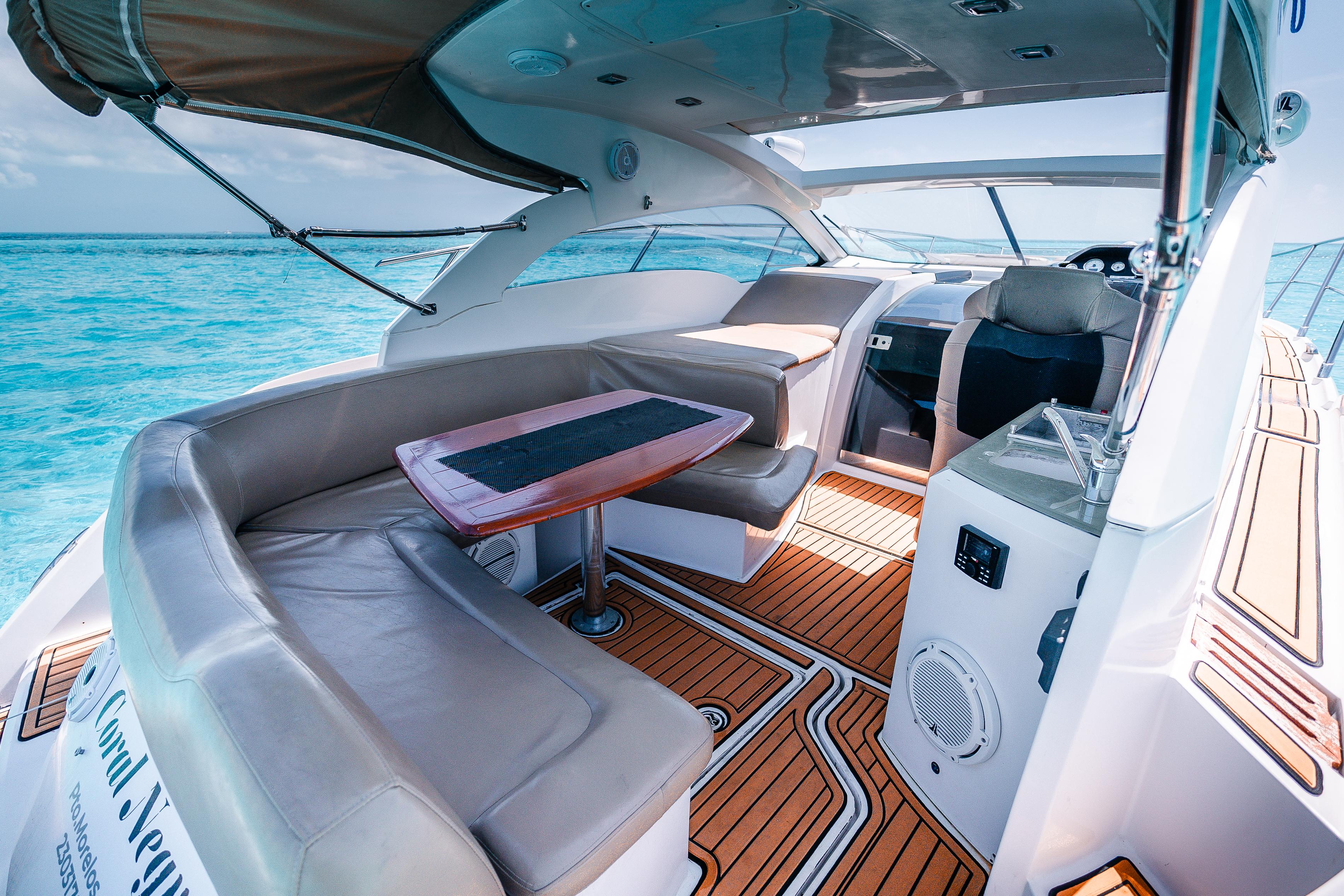 Coral Negro – 37’ Sessa Marine The Coral Negro is a refined 37-foot Sessa Marine that perfectly blends Italian design with comfort and performance. With elegant lines, spacious sunbathing areas, and a smooth, quiet ride, it’s ideal for guests seeking a stylish and comfortable day on the turquoise waters of Cancún and Isla Mujeres. Includes: Professional captain and 1 crew member Large bow sunbed and shaded rear lounge Elegant cabin with restroom and air conditioning Snorkeling gear and floating sea carpet 18 beers, 18 sodas, and 18 bottled waters Fresh towels for all guests 3 bags of ice to keep drinks cold Premium Bluetooth sound system Whether you’re celebrating, relaxing, or exploring, the Coral Negro delivers an unforgettable Mediterranean-style experience with the perfect balance of luxury and fun at sea.