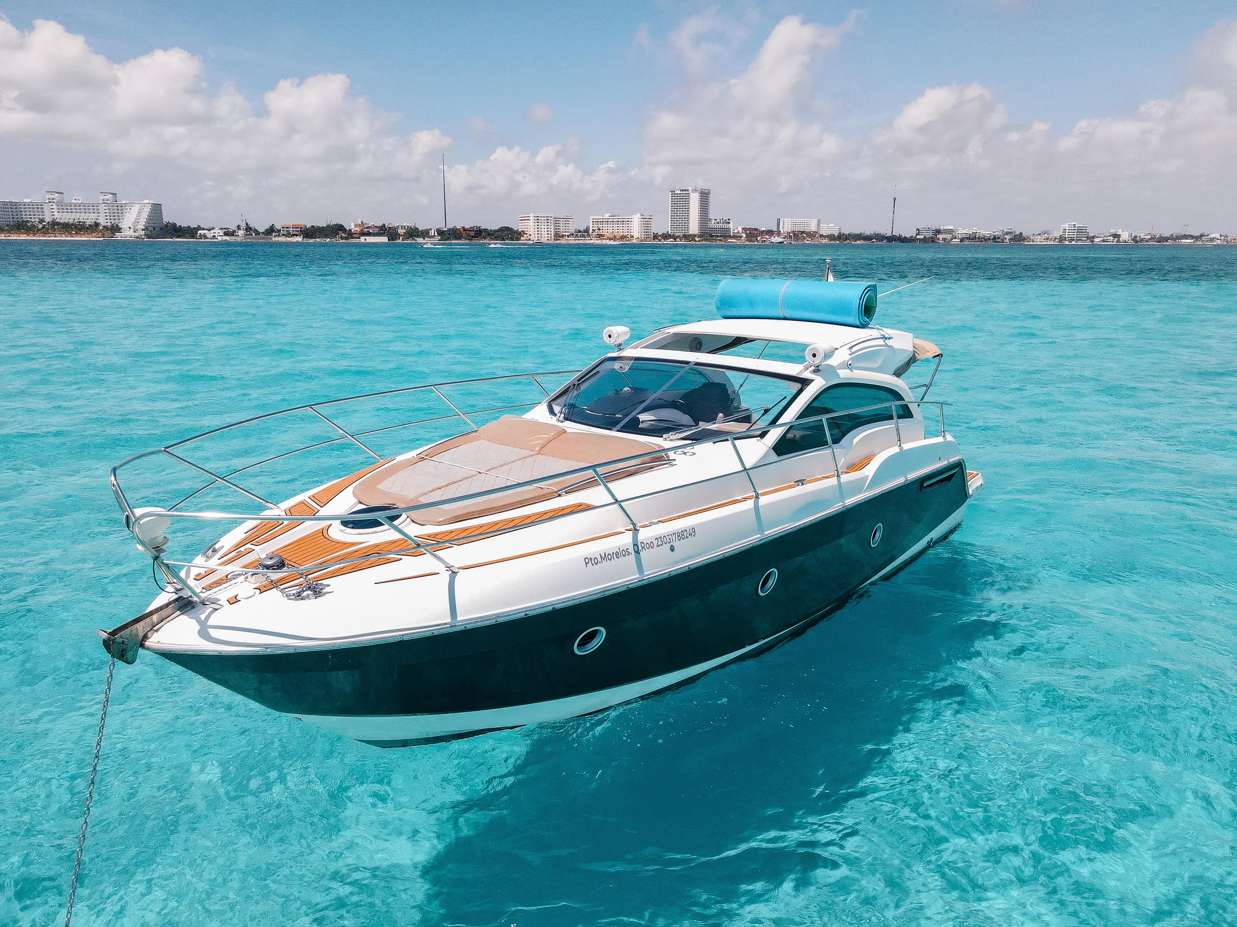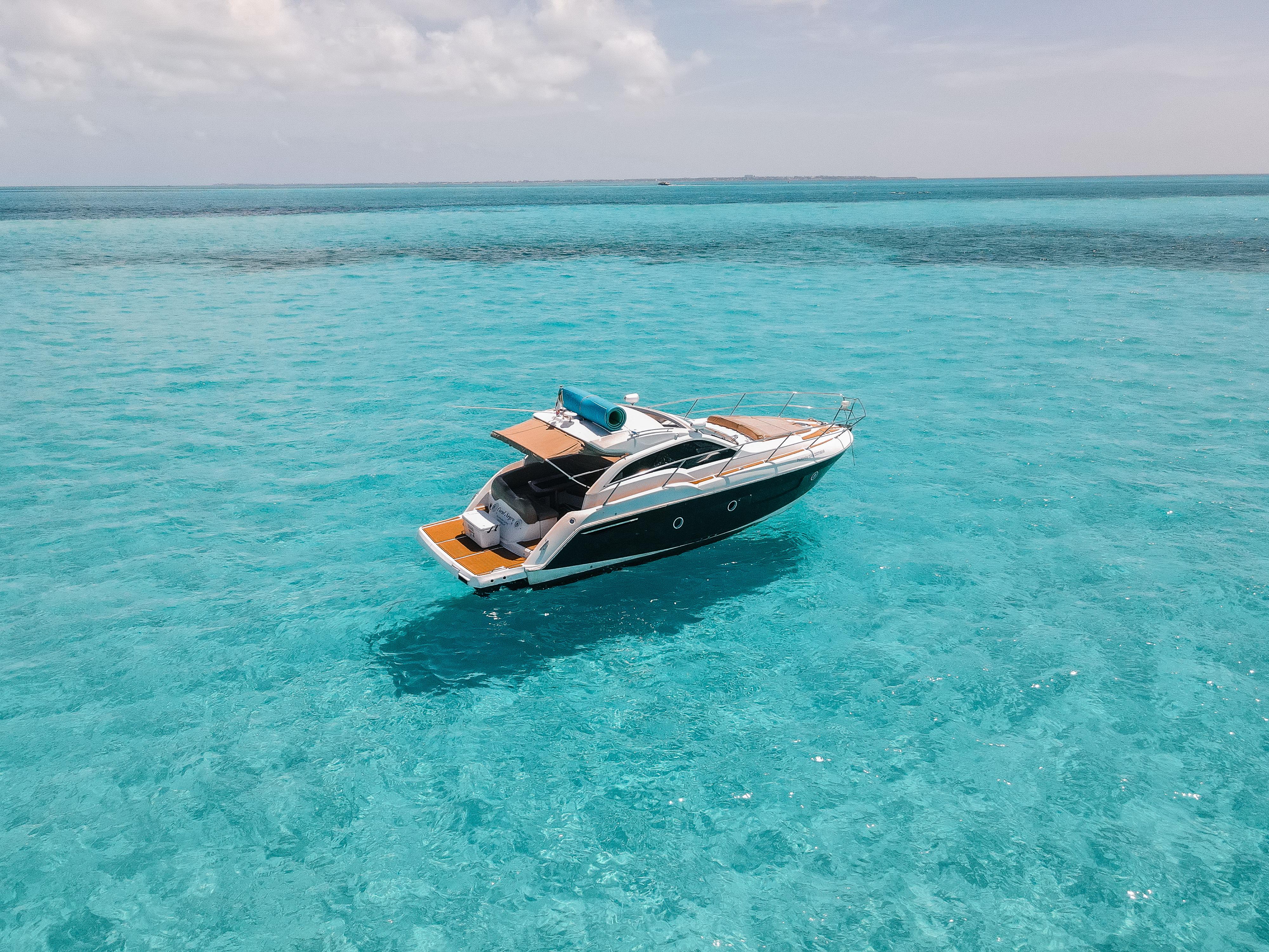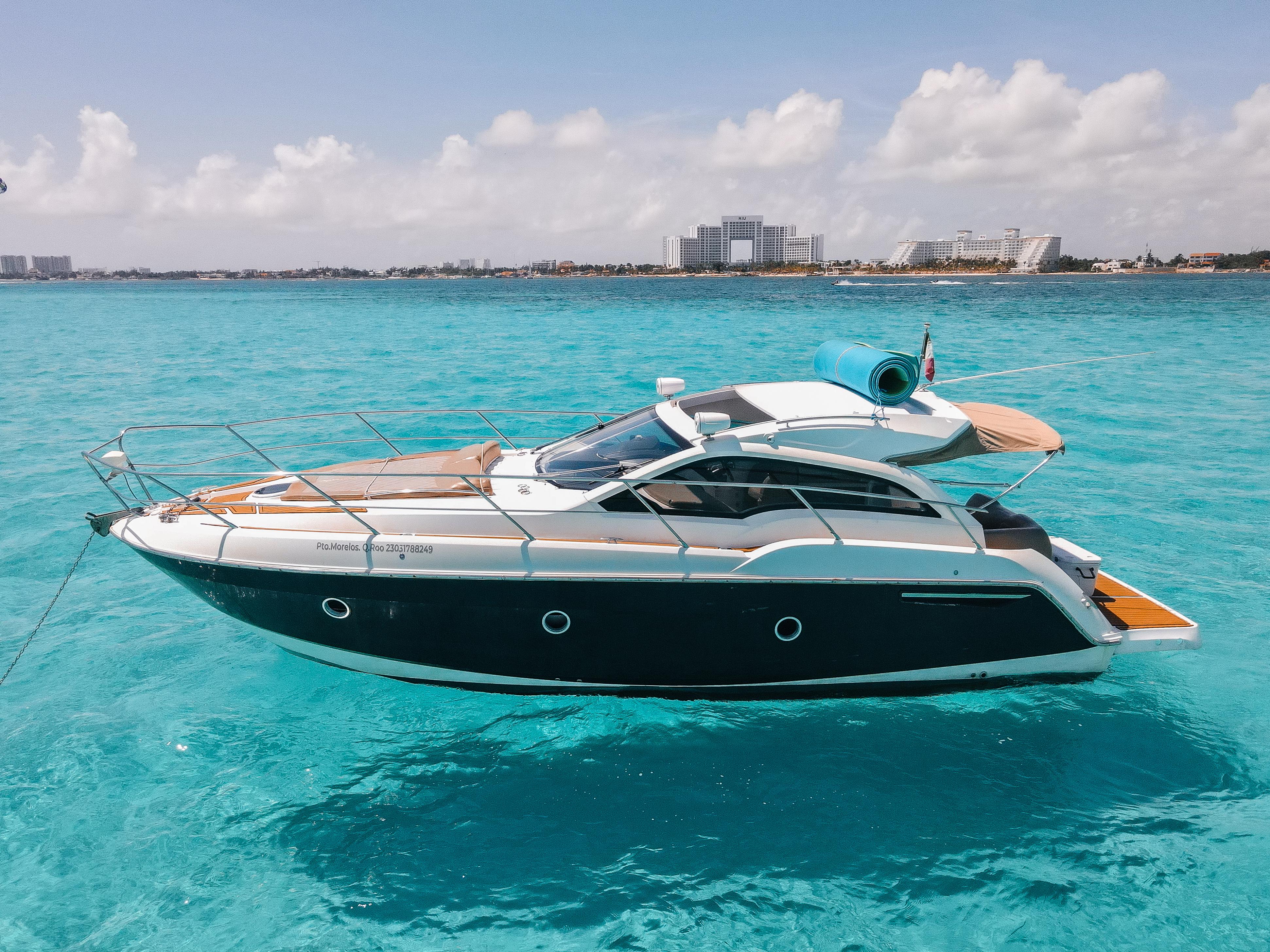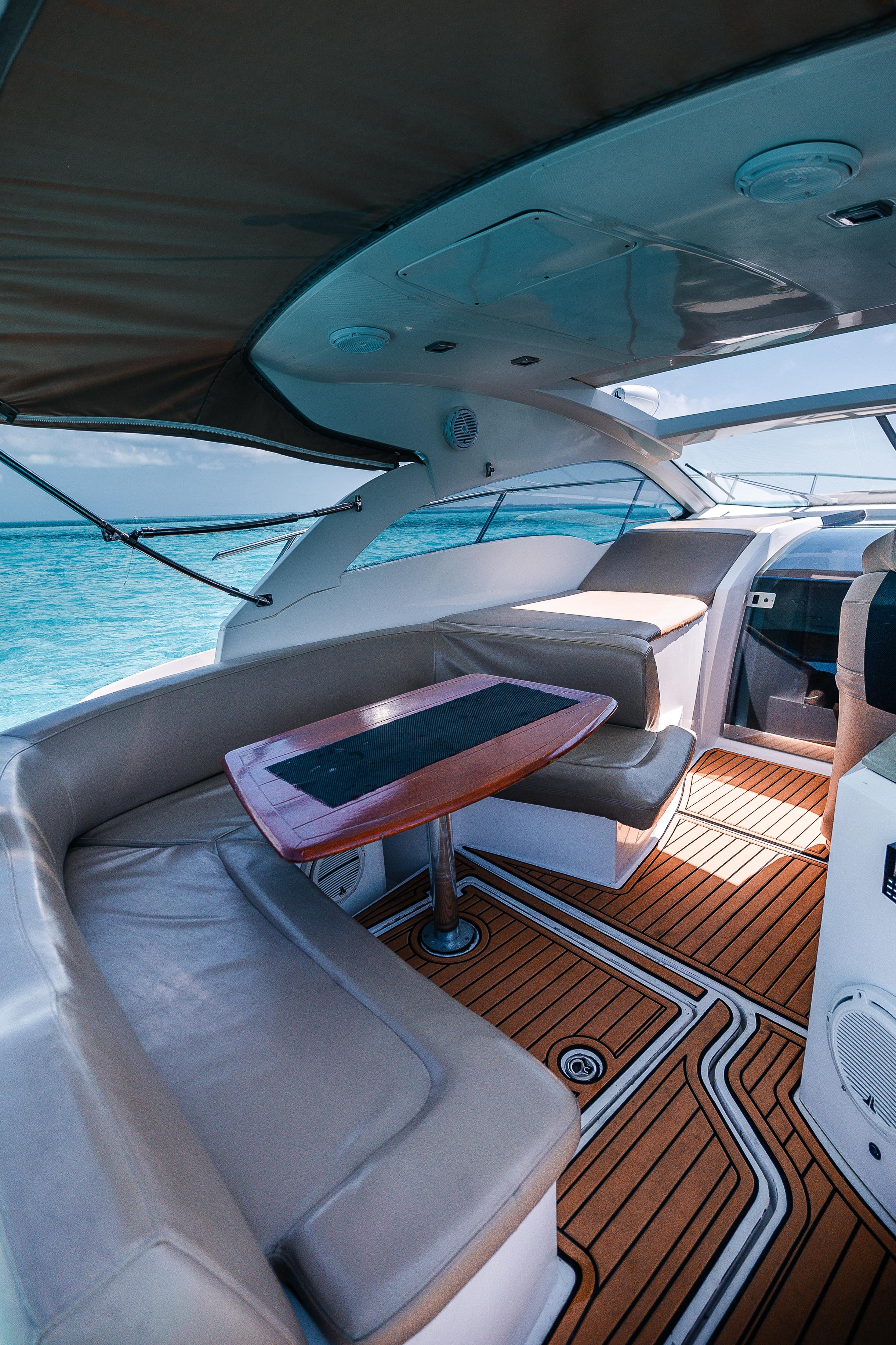 Coral Negro – 37’ Sessa Marine The Coral Negro is a refined 37-foot Sessa Marine that perfectly blends Italian design with comfort and performance. With elegant lines, spacious sunbathing areas, and a smooth, quiet ride, it’s ideal for guests seeking a stylish and comfortable day on the turquoise waters of Cancún and Isla Mujeres. Includes: Professional captain and 1 crew member Large bow sunbed and shaded rear lounge Elegant cabin with restroom and air conditioning Snorkeling gear and floating sea carpet 18 beers, 18 sodas, and 18 bottled waters Fresh towels for all guests 3 bags of ice to keep drinks cold Premium Bluetooth sound system Whether you’re celebrating, relaxing, or exploring, the Coral Negro delivers an unforgettable Mediterranean-style experience with the perfect balance of luxury and fun at sea.
