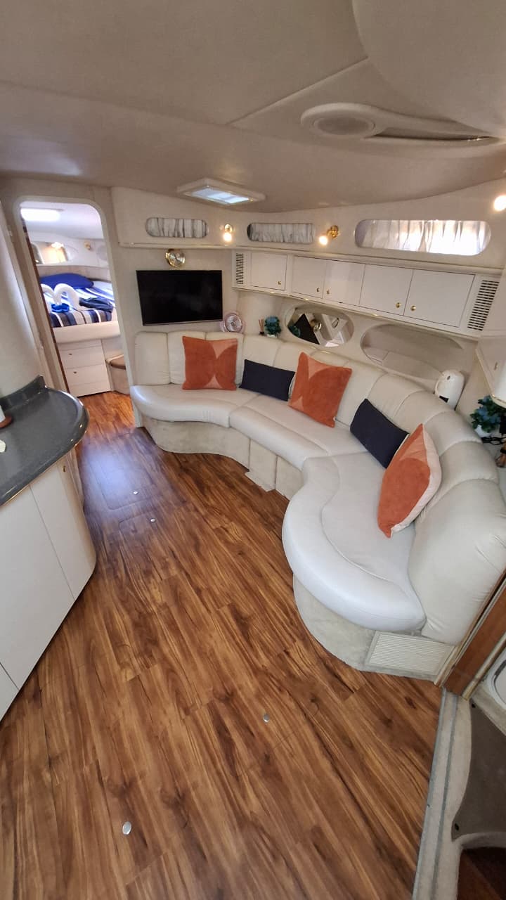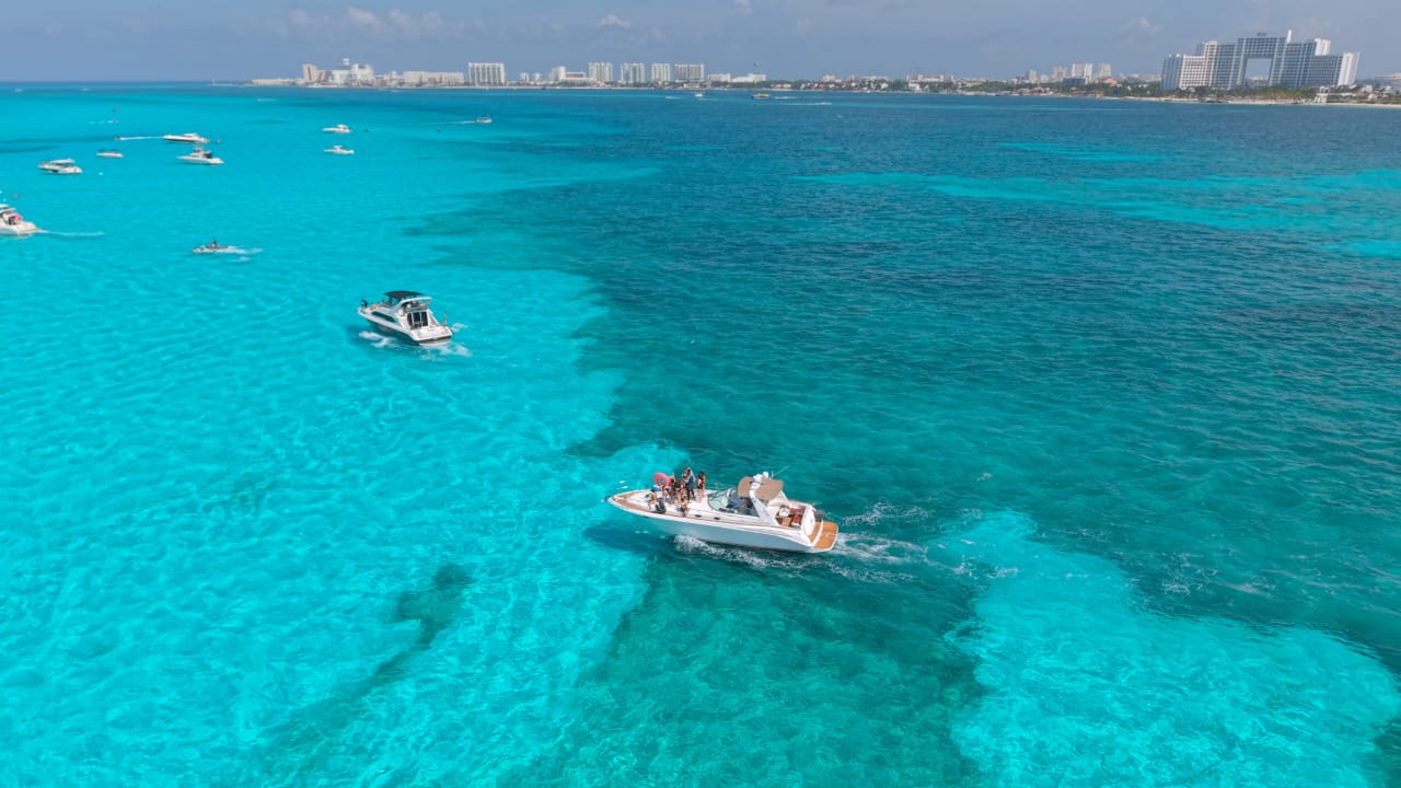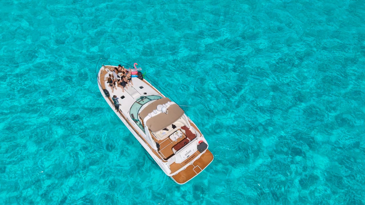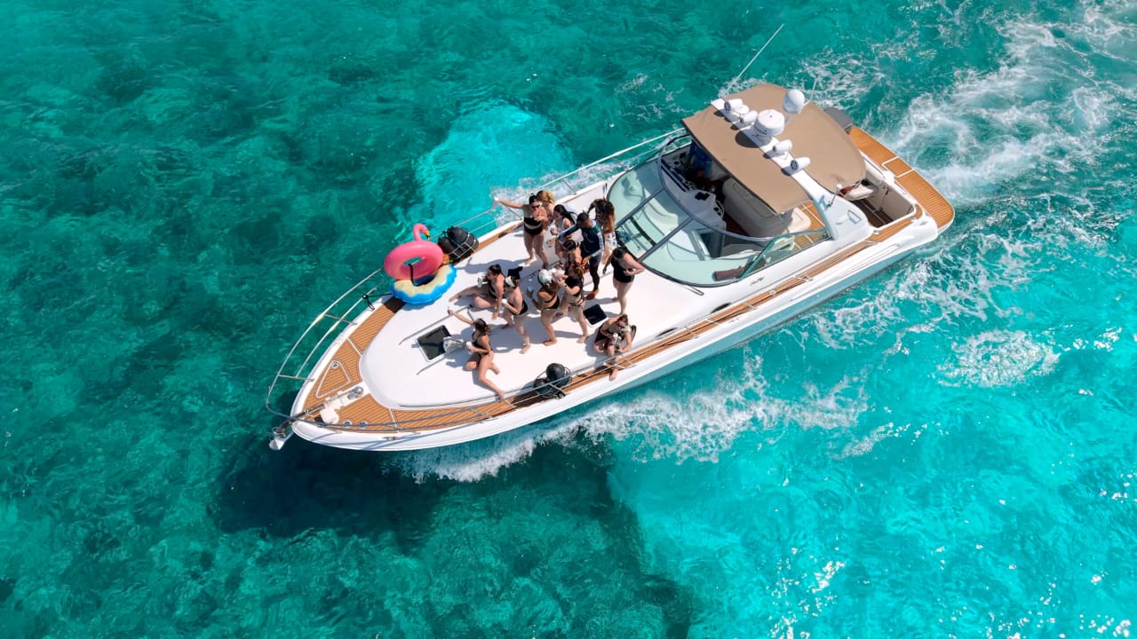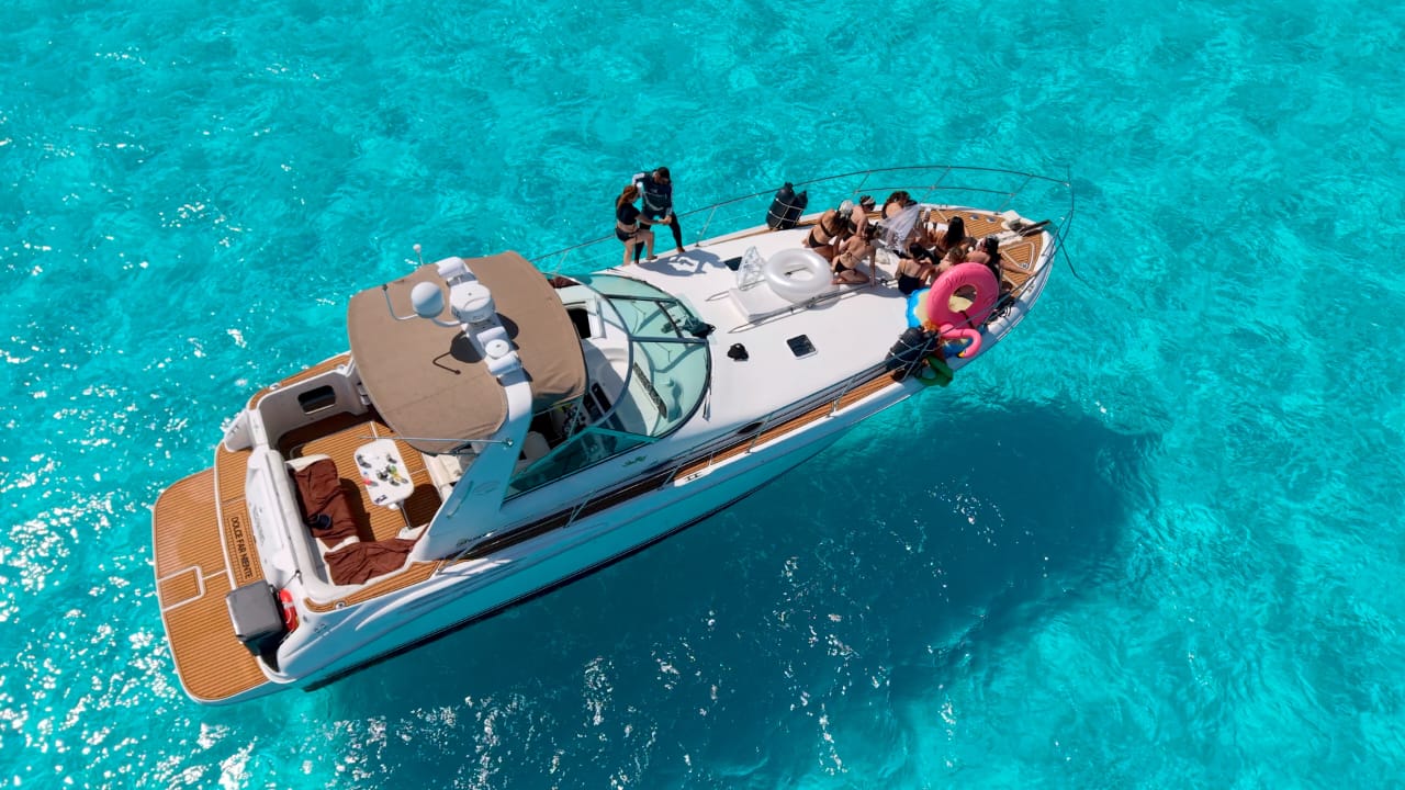 Dolce Far Niente – 44’ Sea Ray Sundancer The Dolce Far Niente embodies the art of effortless luxury. This 44-foot Sea Ray Sundancer combines sporty design with elegant comfort, offering generous outdoor spaces and a beautifully appointed cabin — perfect for groups seeking a premium cruising experience between Cancún and Isla Mujeres. Includes: Professional captain and 2 crew members Spacious bow sunbed and shaded aft deck lounge Elegant cabin with restroom and air conditioning Snorkeling gear and floating sea carpet 24 beers, 24 sodas, and 24 bottled waters Fresh towels for all guests 4 bags of ice to keep drinks chilled Premium Bluetooth sound system Whether it’s a celebration, a romantic day escape, or a relaxed cruise with friends, the Dolce Far Niente offers the perfect blend of comfort, style, and carefree pleasure at sea. ‍