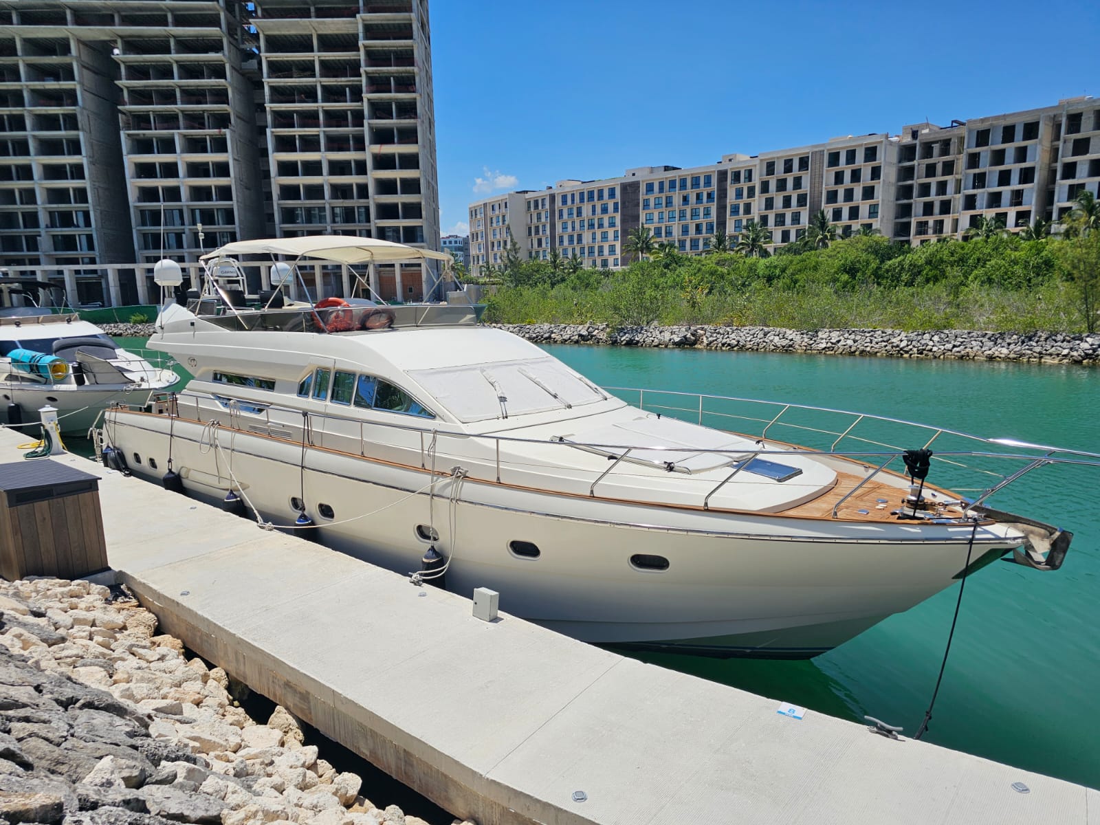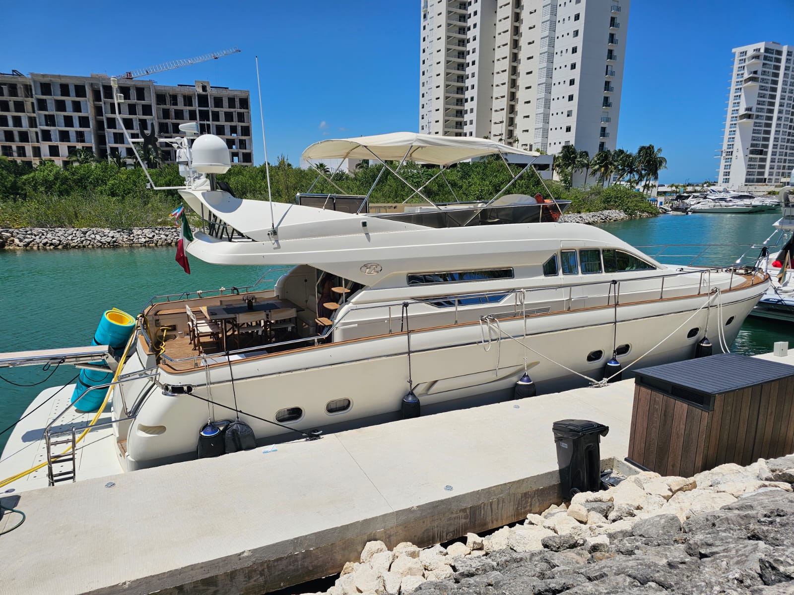 Estella de Mar – 70’ VZ The Estella de Mar is a magnificent 70-foot VZ yacht that redefines luxury on the water. With its Italian craftsmanship, expansive flybridge, and elegant interiors, it offers an unmatched cruising experience for guests seeking comfort, sophistication, and unforgettable views of Cancún and Isla Mujeres. Includes: Professional captain and 3 crew members Expansive flybridge with shaded lounge and panoramic seating Spacious bow sunbed and aft dining area Fully equipped interior with salon, kitchen, and restrooms Snorkeling gear and floating sea carpet 24 beers, 24 sodas, and 24 bottled waters Fresh towels for all guests 4 bags of ice to keep drinks chilled Premium Bluetooth sound system Perfect for exclusive celebrations, corporate events, or extended day cruises, the Estella de Mar delivers the ultimate yachting experience — spacious, elegant, and unforgettable.