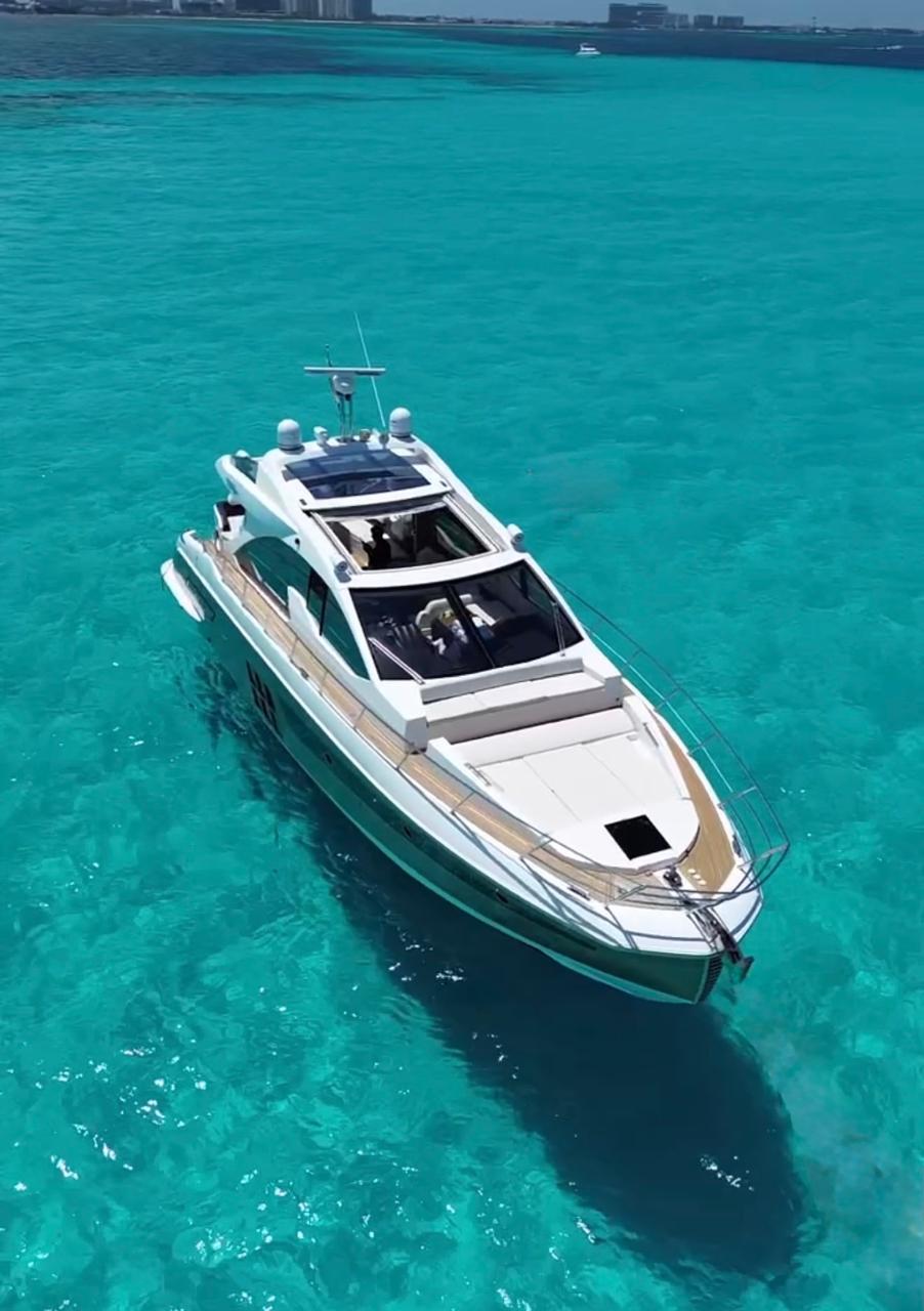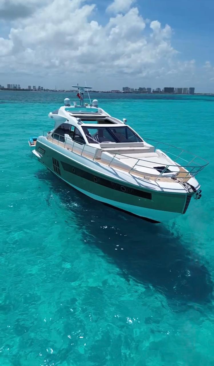 Gericco – 55’ Azimut The Gericco is a stunning 55-foot Azimut that delivers Italian luxury and power in perfect harmony. With its sleek profile, spacious flybridge, and refined interiors, this yacht offers an unmatched cruising experience across Cancún and Isla Mujeres — ideal for guests who demand comfort, elegance, and performance. Includes: Professional captain and 2 crew members Expansive flybridge with shaded seating and panoramic views Spacious bow sunbed and aft dining area Luxurious cabin with restroom and air conditioning Snorkeling gear and floating sea carpet 24 beers, 24 sodas, and 24 bottled waters Fresh towels for all guests 4 bags of ice to keep drinks chilled Premium Bluetooth sound system Perfect for celebrations, family outings, or corporate escapes, the Gericco combines Azimut’s signature style with modern comfort to create an unforgettable yachting experience on the Caribbean Sea. ‍