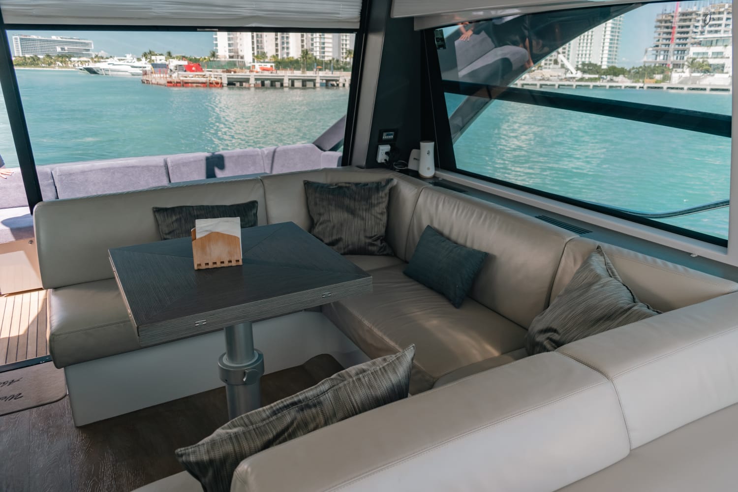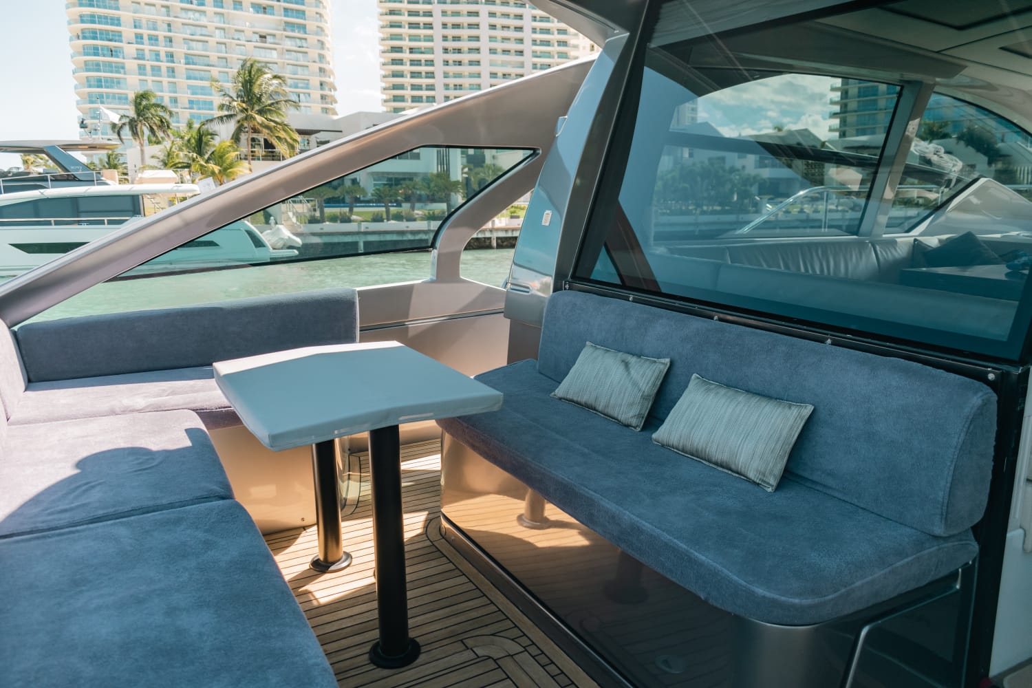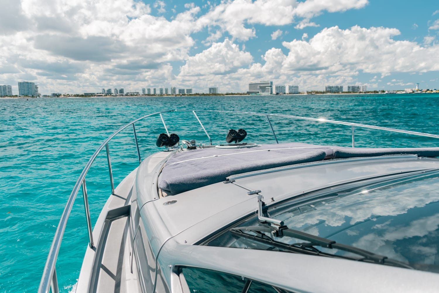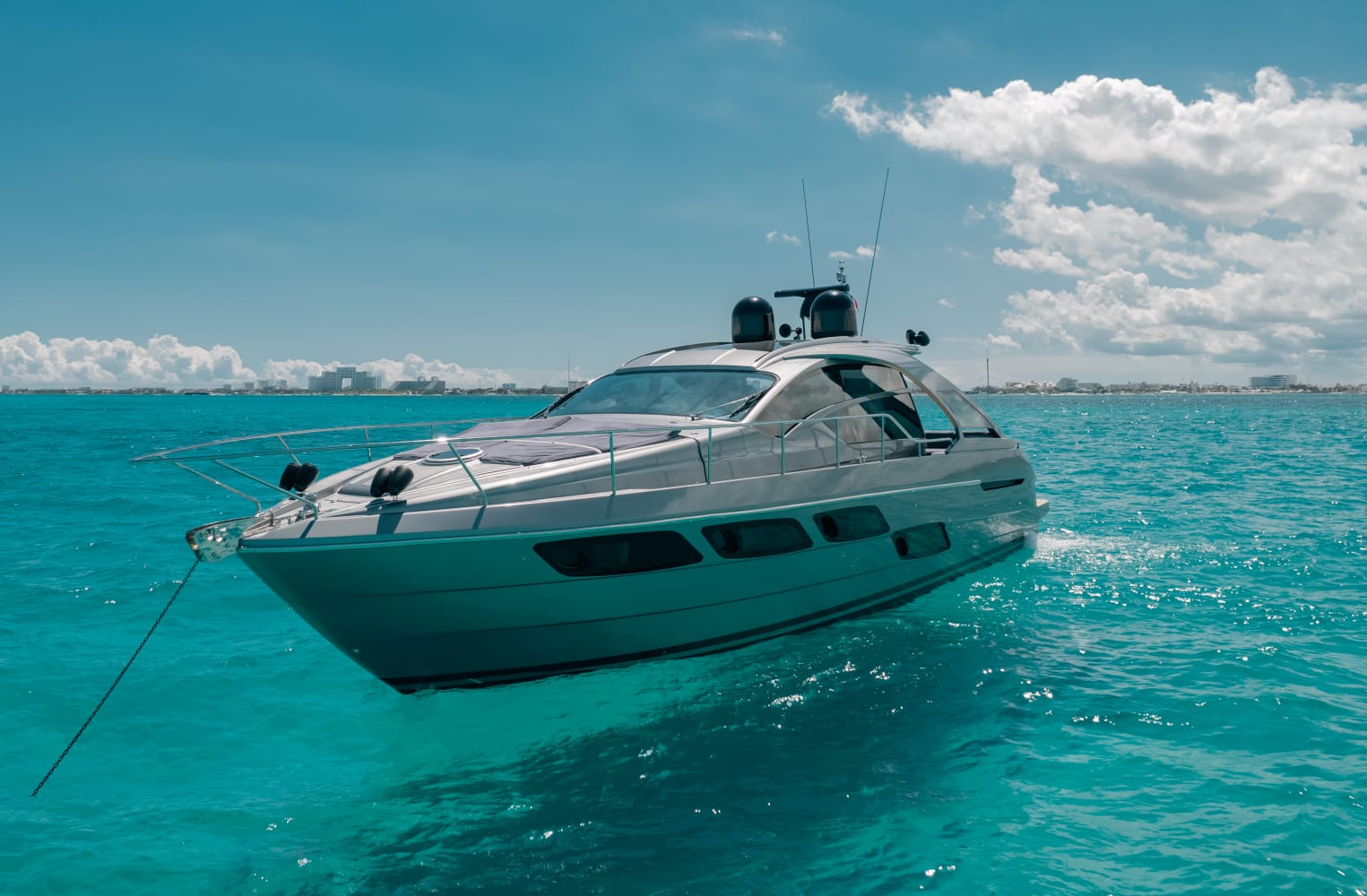 Kantenah – Pershing 5X 56’ – 2019 📍 Max capacity: 12 guests The Kantenah Pershing 5X 56’ is a sleek Italian sport yacht that combines cutting-edge performance with refined comfort. Perfect for stylish day charters, it offers spacious lounging areas, modern interiors, and a dynamic cruising experience along Cancún and Isla Mujeres. 🛋️ Layout & Features: – 2 cabins with comfortable berths – 2 full bathrooms – Interior salon with lounge and dining area – 2 dining spaces (interior & exterior) – Forward and aft sundecks for sunbathing – Air conditioning throughout – TV and Bluetooth premium sound system 🧊 Full-Day Experience Includes: – Professional captain and crew – Snorkeling gear and life vests – Towels and dry snacks – 24 bottled waters, 24 soft drinks, 24 beers – 1 bag of ice per hour Sporty, modern, and luxurious, the Kantenah Pershing 5X 56’ is ideal for those seeking an exhilarating yet comfortable charter—whether relaxing on the sundecks, exploring Isla Mujeres, or cruising the turquoise Caribbean waters in style.