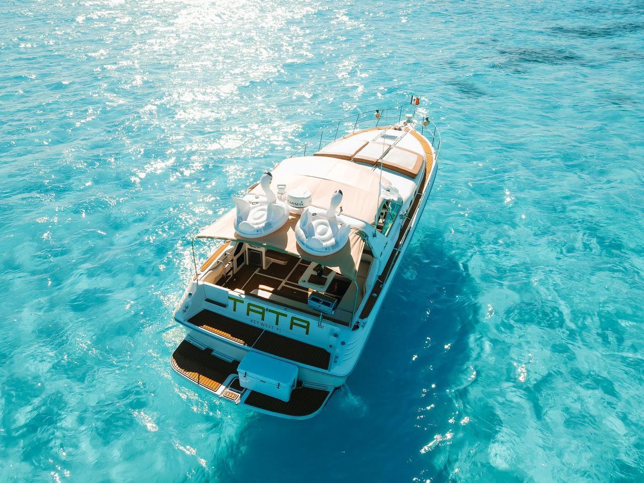 Tata 43 ft Sea Ray Sundancer Step aboard this sleek flybridge cruiser and experience the ultimate blend of luxury, performance, and carefree fun. Highlights Spacious Comfort – Two private staterooms with ensuite bathrooms – Sunlit salon with wraparound seating and panoramic views Fully Equipped Galley & Service – Kitchen with fridge, microwave/convection oven, and Yeti-style cups – Professional crew: captain + 1 attendants – Refreshments included: 24 beers, 24 sodas, 24 waters kept ice-cold with hourly ice Modern Amenities – Whisper-quiet A/C, adapter outlets – Bluetooth sound system for seamless music and movie playback Water Toys & Adventure – Paddleboard, inflatable floats, water mat, snorkel gear, and life jackets Whether cruising the coast or anchored for sunset cocktails, this Sea Ray delivers a stylish, worry-free escape on the water.