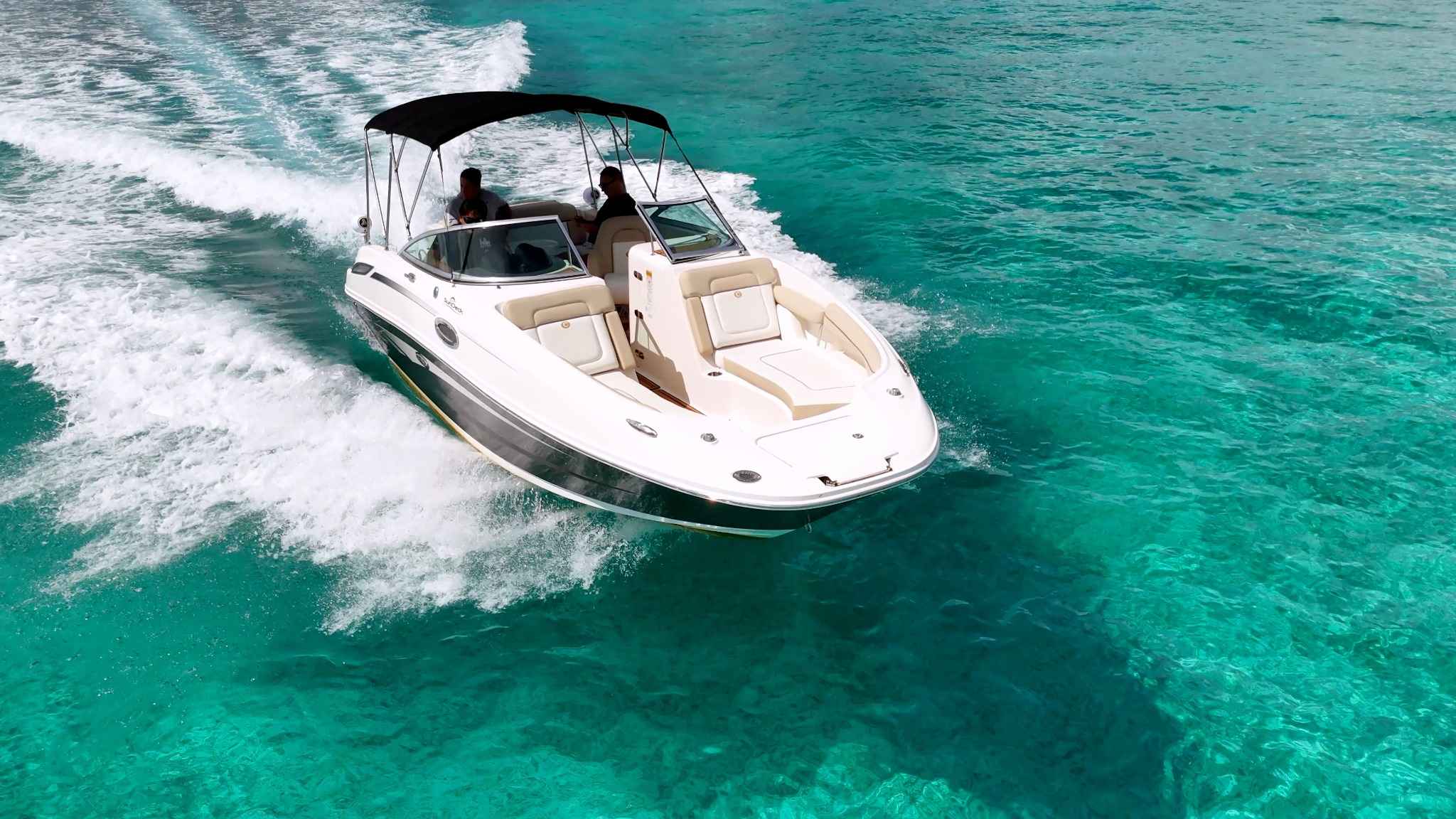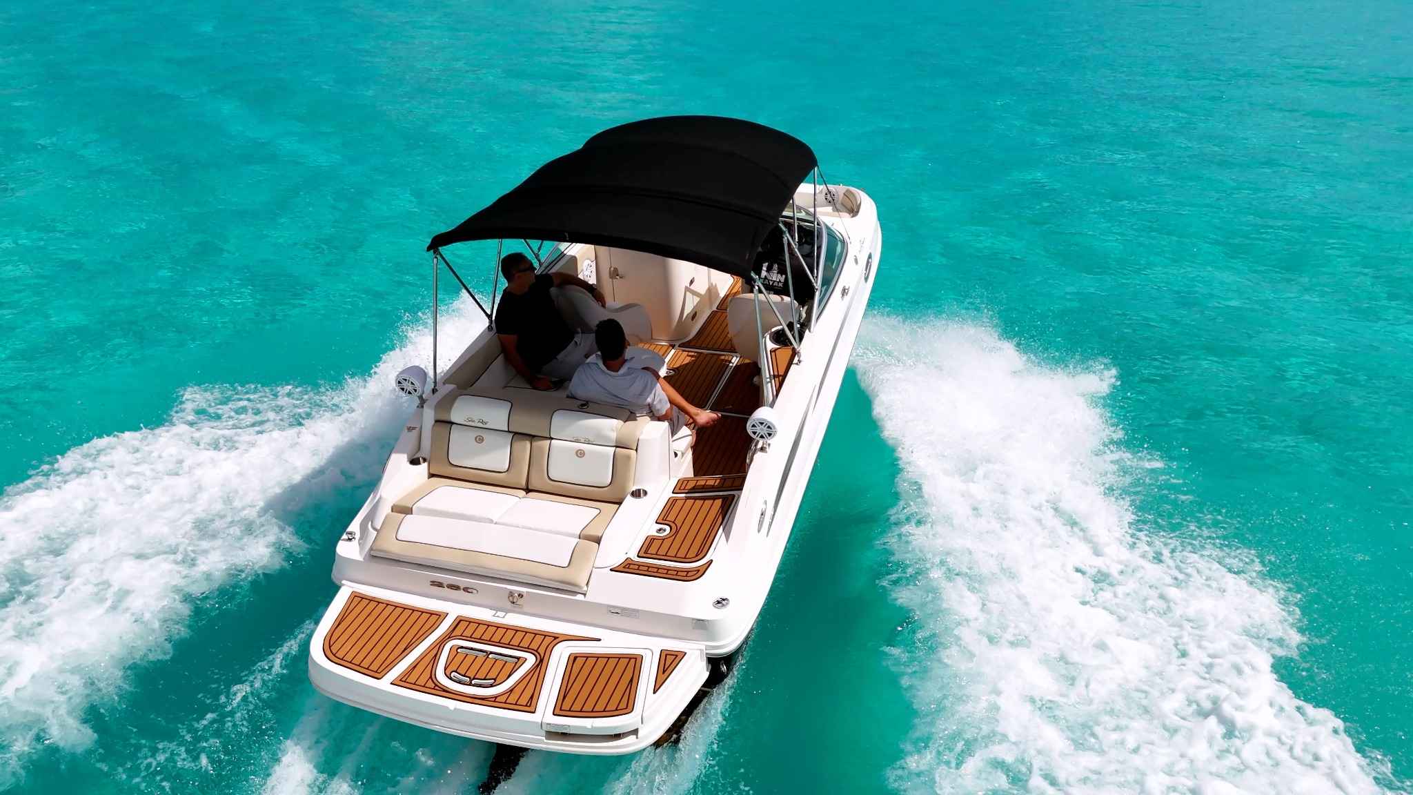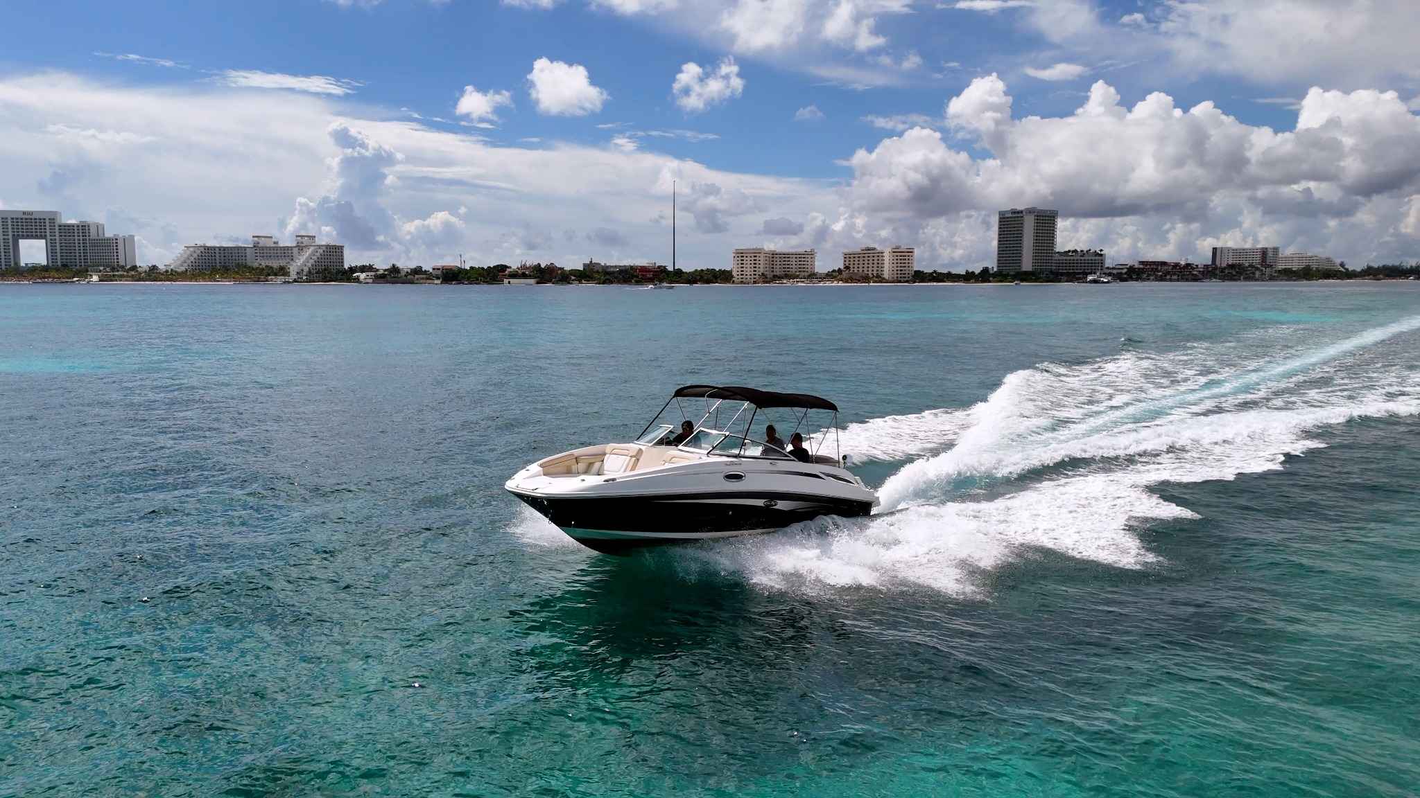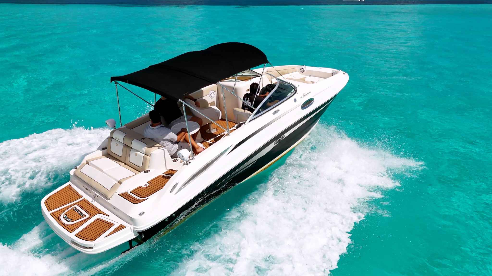 Tri – 27’ Sea Ray Sundancer The Tri is a compact yet elegant 27-foot Sea Ray Sundancer that combines sporty performance with exceptional comfort. Ideal for couples or small groups, it’s perfect for relaxed cruising and short getaways around Cancún and Isla Mujeres. Includes: Professional captain Comfortable bow and shaded rear lounge Cozy cabin with restroom Snorkeling gear and floating sea carpet 12 beers, 12 sodas, and 12 bottled waters Fresh towels for all guests 2 bags of ice to keep drinks cold Bluetooth sound system Whether it’s a romantic cruise or a laid-back day with friends, the Tri offers a smooth ride, great amenities, and the timeless Sea Ray quality for your perfect day at sea.