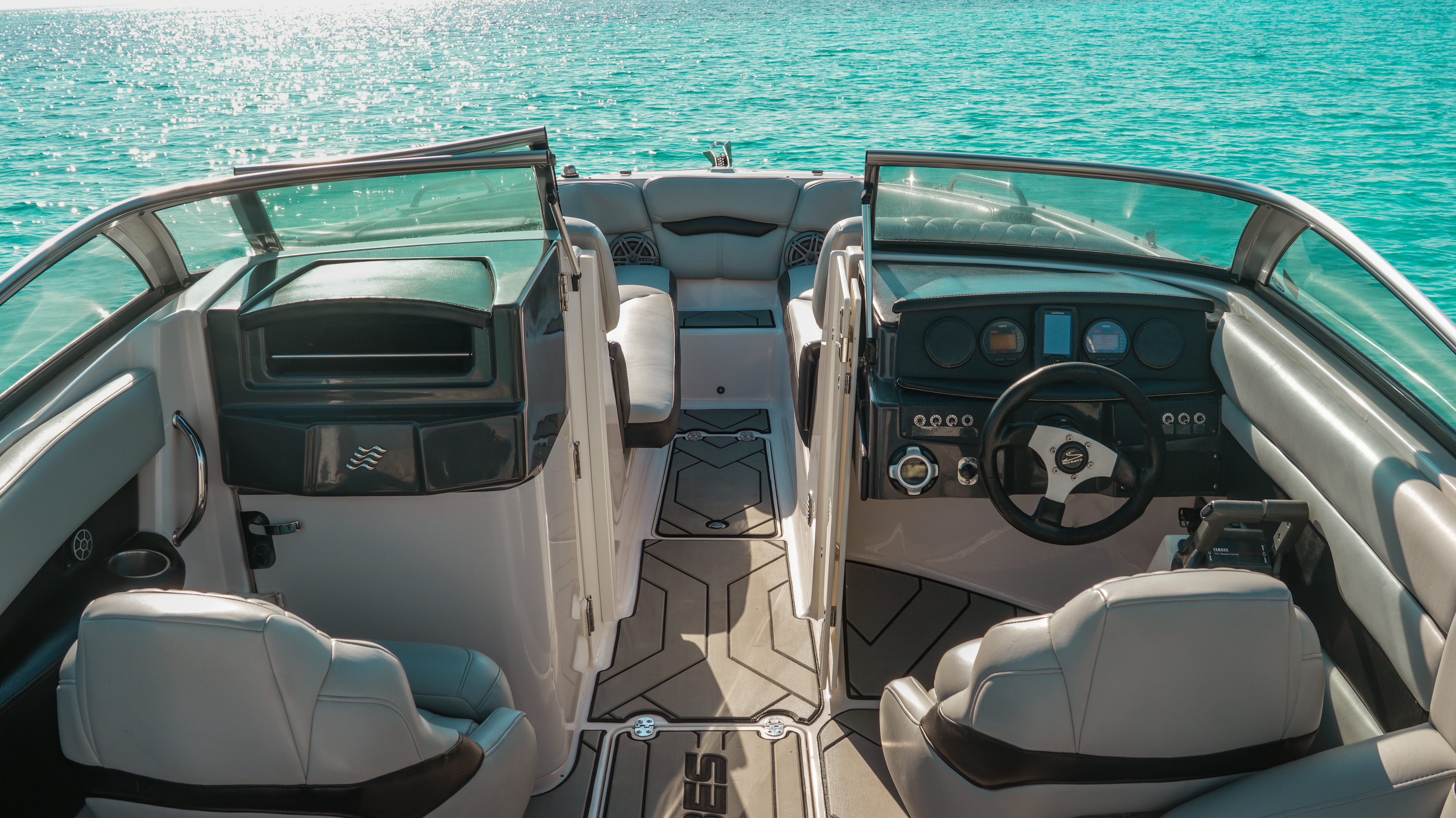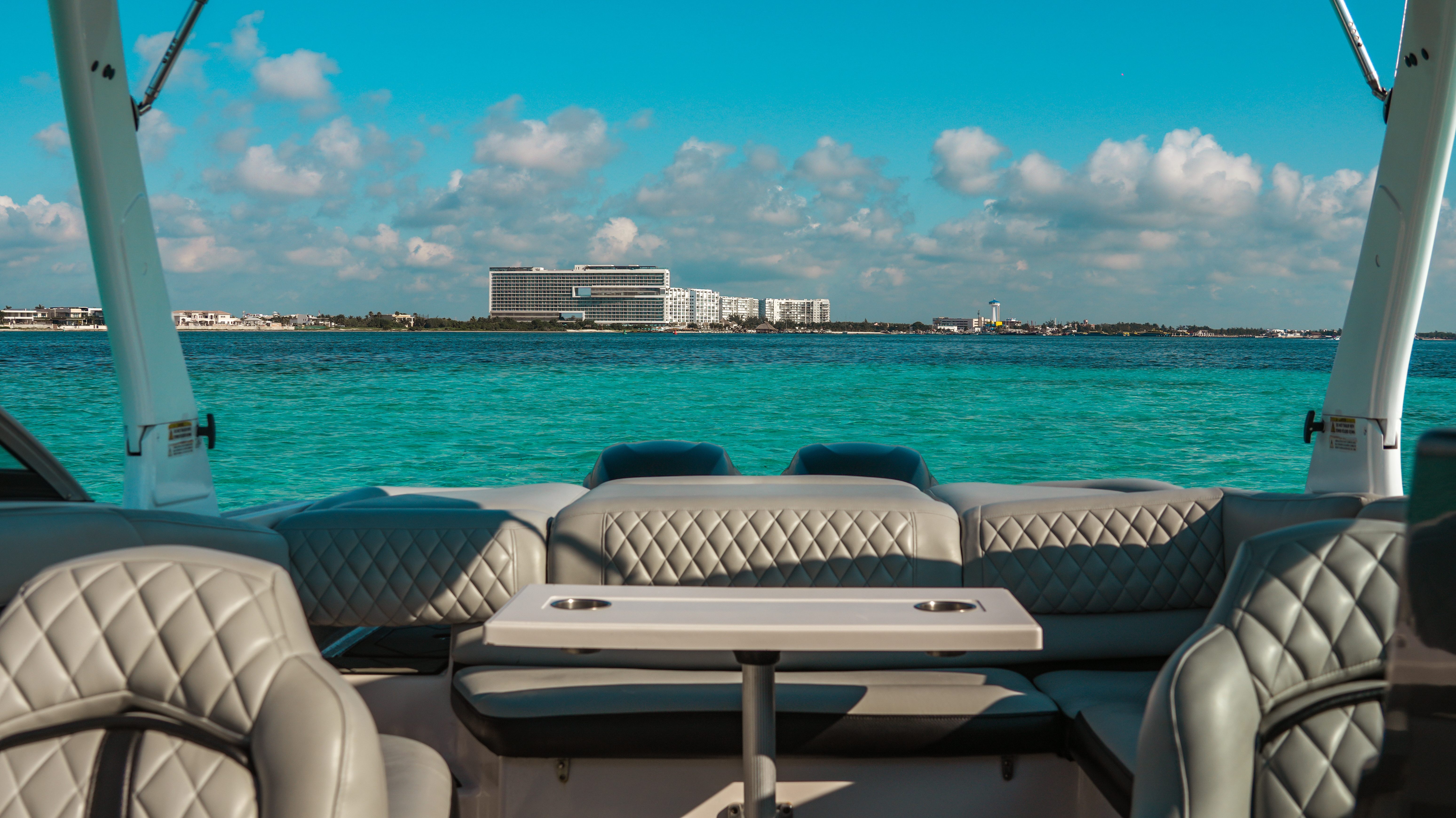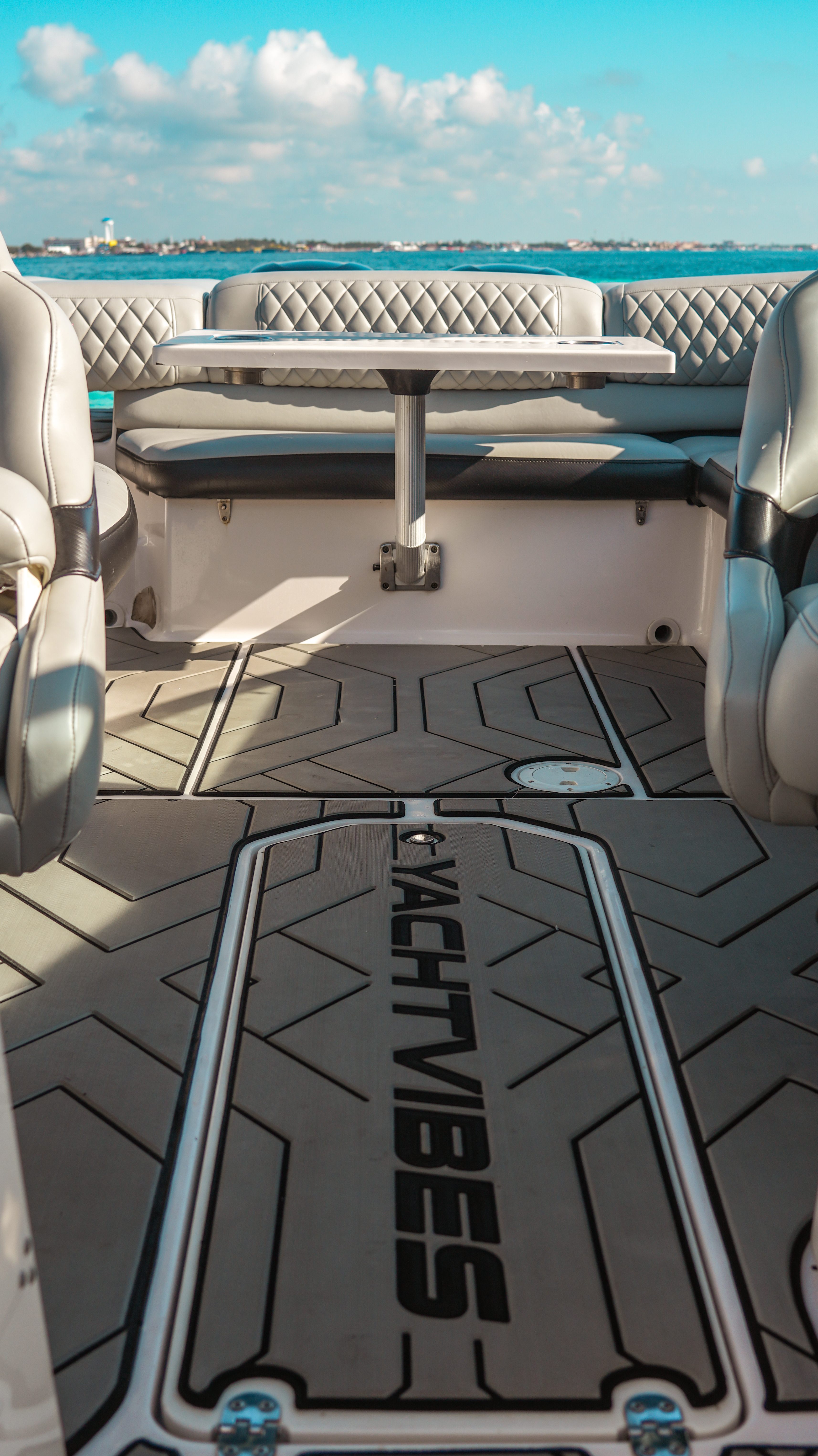 Four Winns TRICK 26’ 📍 Max capacity: 8 guests The Four Winns TRICK 26’ is a sporty day cruiser designed for fun on the water. Compact yet stylish, it offers an easygoing atmosphere with comfortable seating, premium sound, and sleek details—perfect for couples, small groups, or families seeking a relaxed yacht vibe in Cancún. 🛋️ Layout & Features: – Comfortable seating layout for up to 8 guests – Small hydraulic swim platform for easy water access – JL premium Bluetooth sound system – Underwater LED lights for evening ambience 🧊 Full-Day Experience Includes (YACHTVIBES): – Professional and attentive captain – Swimming stop at Isla Mujeres (weather permitting) – 24 bottled waters, 24 soft drinks, 24 beers, and ice Playful, fresh, and versatile, the Four Winns TRICK 26’ is ideal for intimate charters—whether you’re soaking up the sun at North Beach, cruising the turquoise waters, or setting the vibe with music and friends.