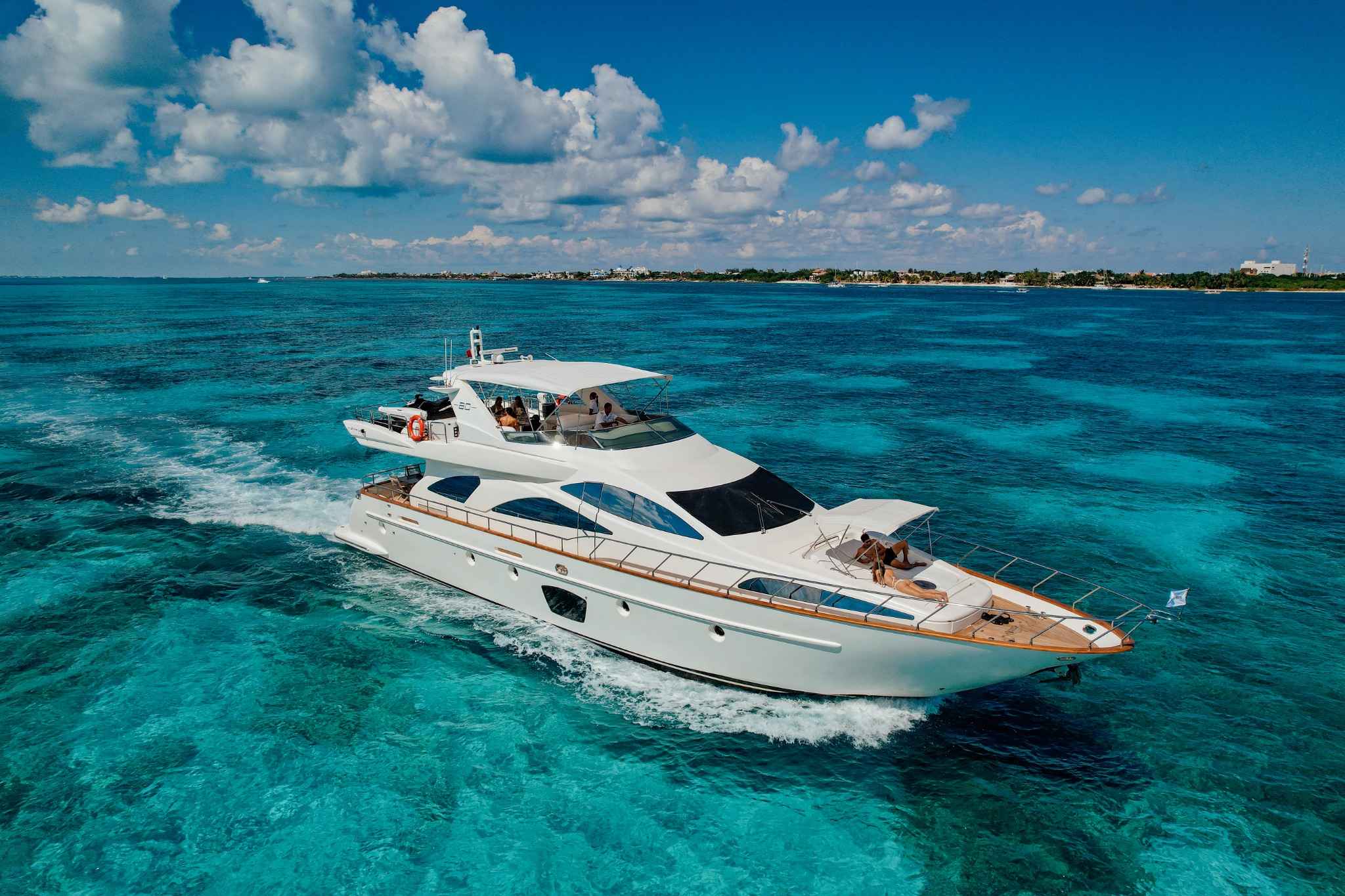 Azimut 80’ TRUCO II Experience luxury at sea aboard the stunning Azimut 80’ TRUCO II , designed for unforgettable moments on the water. Features: 4 elegant cabins 4 full bathrooms Spacious flybridge with panoramic views Interior lounge with air conditioning Fully equipped kitchen Outdoor seating area Sunbeds at the bow and stern Underwater lights Includes: Personalized service from a professional crew Swimming stop in Isla Mujeres (weather permitting) Towels and life jackets Food selection: tropical ceviche, tuna sashimi, salmon canapés, chicken quesadillas, guacamole, snacks, and fresh fruit Drinks: 24 waters, 24 sodas, 24 beers, and ice Note: Inflatable water toys not included. Availability upon request.