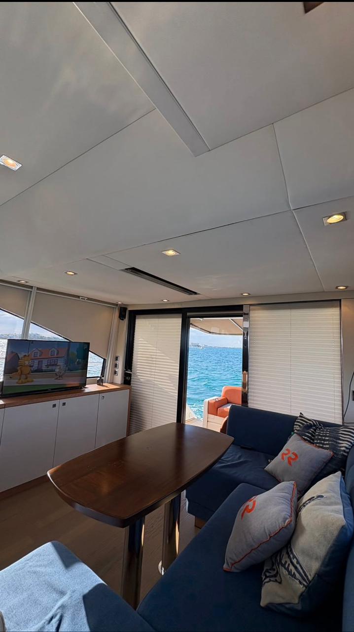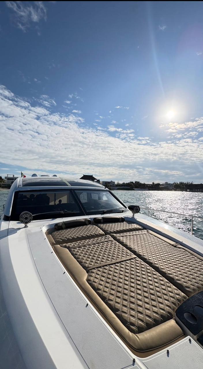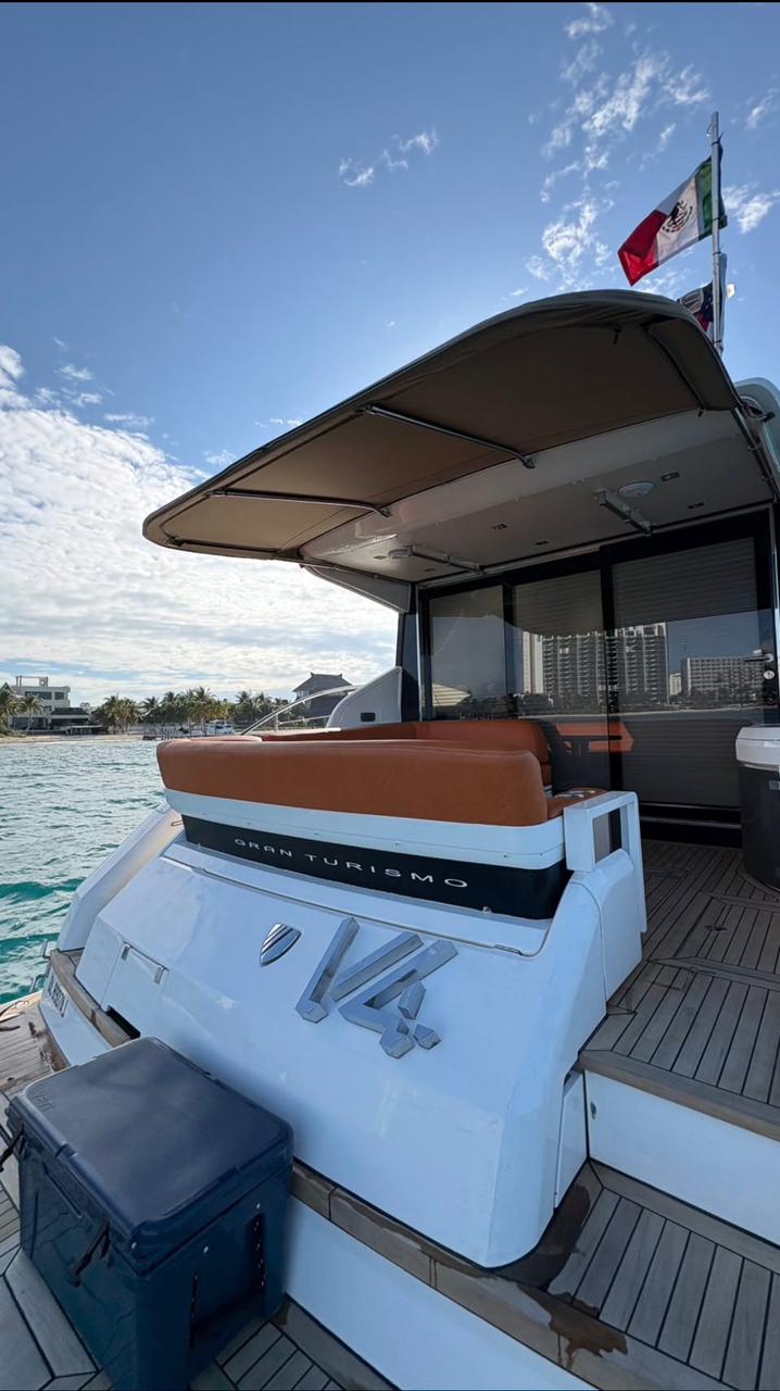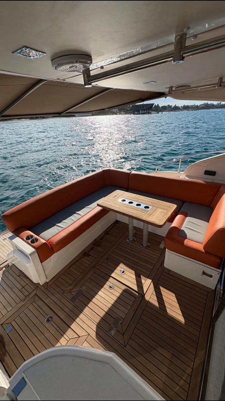 V4 – 45 ft Fairline Gran Turismo Step aboard V4 , a sleek and modern Fairline Gran Turismo built for high-performance cruising with refined comfort and contemporary design. Highlights Comfort & Layout – Open cockpit with stylish seating and social layout – Sun pads for relaxing while cruising or anchored in calm waters Fully Equipped & Service – Elegant cabin with lounge and resting areas below deck – Professional crew on board for a smooth, attentive experience – Refreshments included and kept ice-cold throughout the trip Modern Amenities – Air-conditioned interior spaces – Bluetooth sound system for music on board Water & Fun – Floating mat and inflatables – Snorkel gear and life jackets for all guests Perfect for guests seeking a sporty yet luxurious experience, V4 delivers style, speed, and comfort on the water.